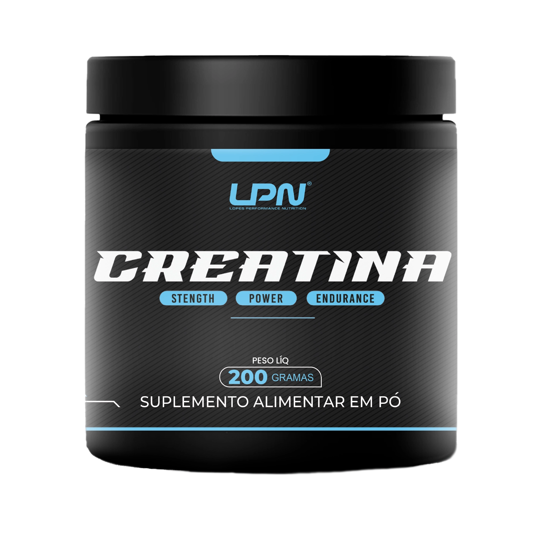 Um frasco contém 200 gramas de creatina em pó.
